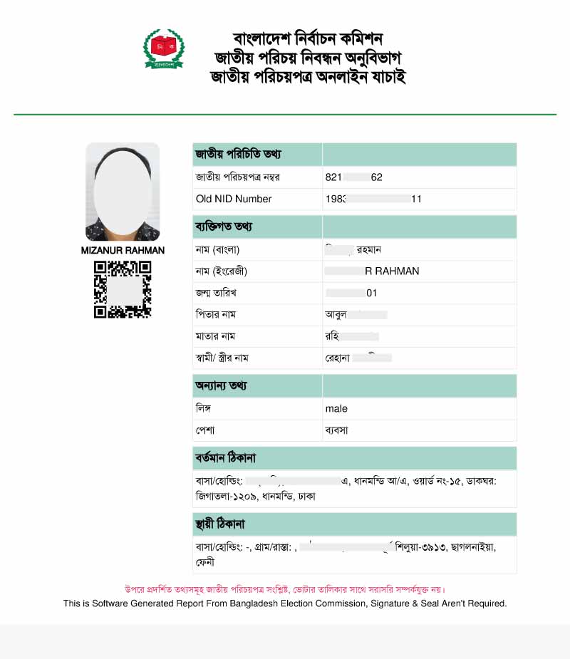 - পিতা ও মাতার জাতীয় পতিচয়পত্র