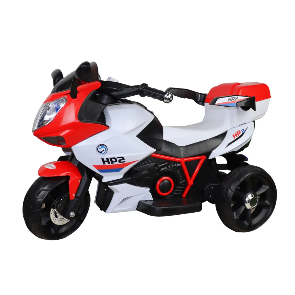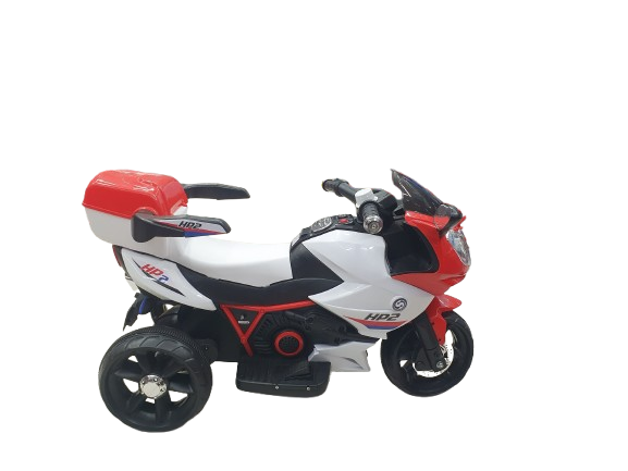 With the children’s electric motorcycle HP2 FB-6187, your child can ride as if on an original motorcycle from 3 years and up at a top speed of 4.5 km/h. The motorcycle has 3 large, extremely stable wheels for optimal grip on all surfaces. The children’s electric motorcycle is controlled by a accelerator pedal. In addition, your child is protected by an automatic braking system that brakes immediately when the accelerator pedal is released. On the dashboard there is a music button with different melodies and an option for volume control. In the large toy basket, at the back of the motorcycle, favorite toys are guaranteed to be accommodated. The motorcycle is suitable up to a maximum payload of 30 kg. Special features Article Children’s Electric Motorcycle HP2 FB-6187, with music function, toy basket, from 3 years